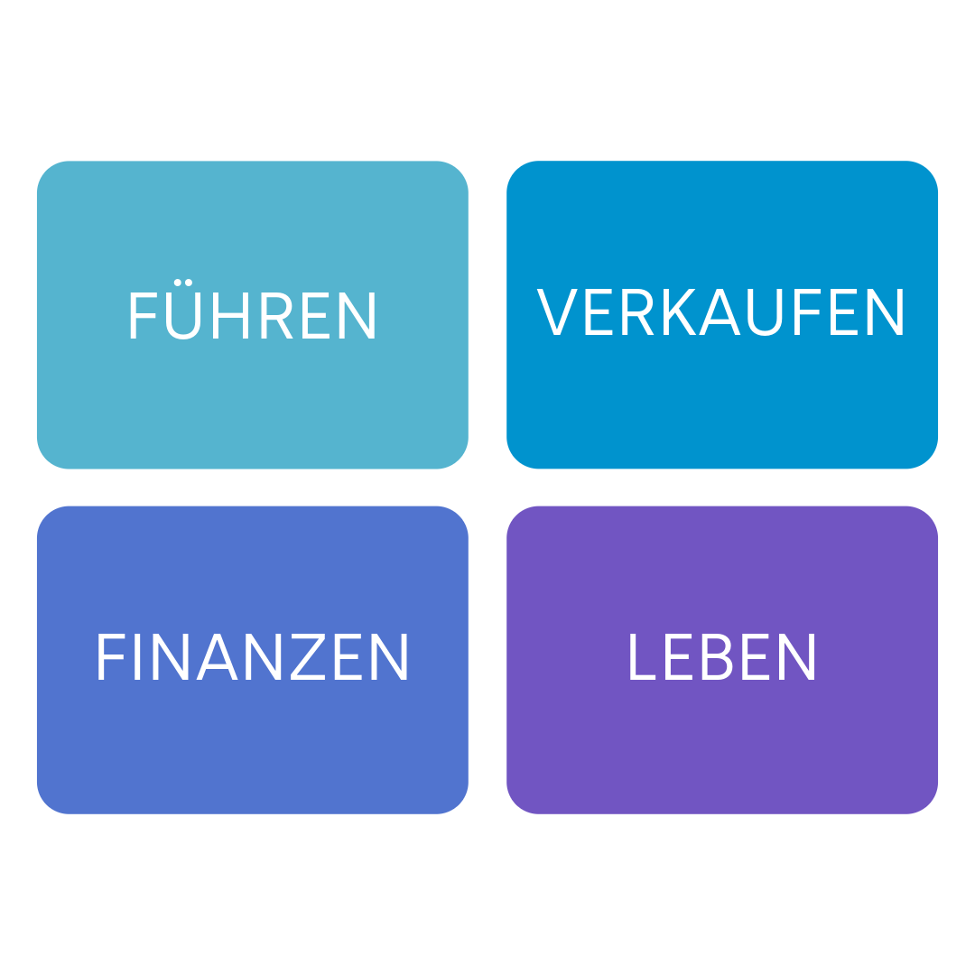 Für den Weg zum erfolgreichen Unternehmertum entwickeln und recherchieren wir maßgeschneiderte Angebote, die Sie während Ihres aktiven Berufslebens begleiten. Dieser Weg teilt sich in die vier Bereiche Führen, Verkaufen, Finanzen und Leben. Dazu haben wir umfangreiche praxisorientierte Unterstützung durch Seminare, Beratungsangebote, Tipps und konkretes Handwerkszeug für Sie zusammengestellt.